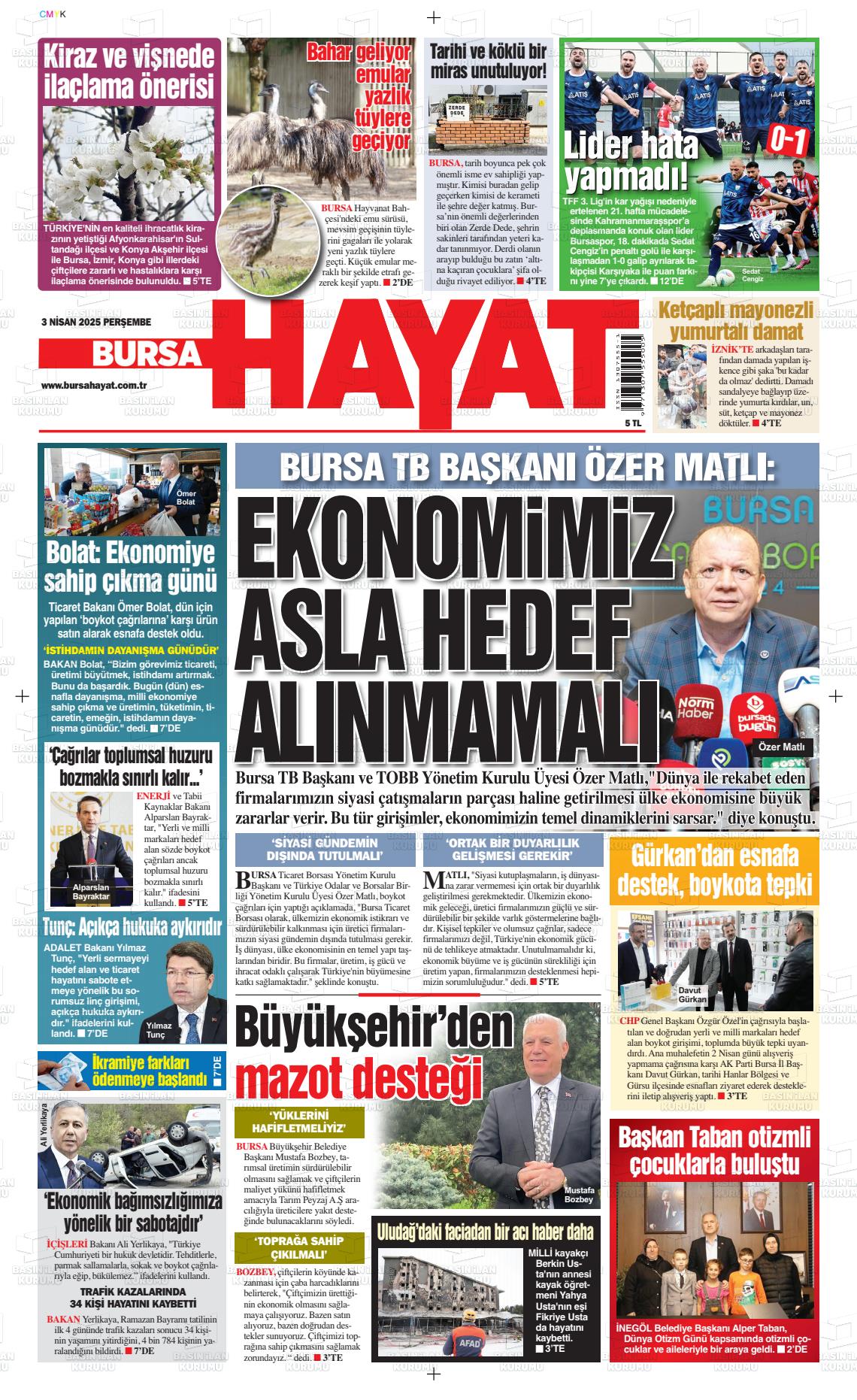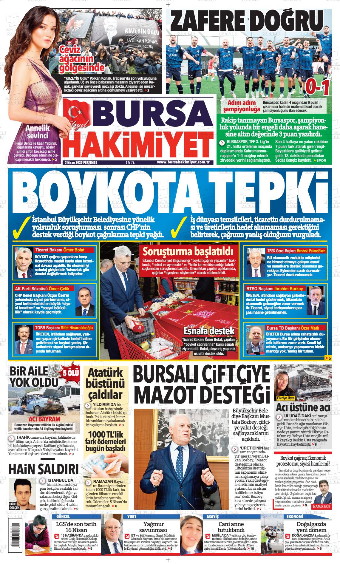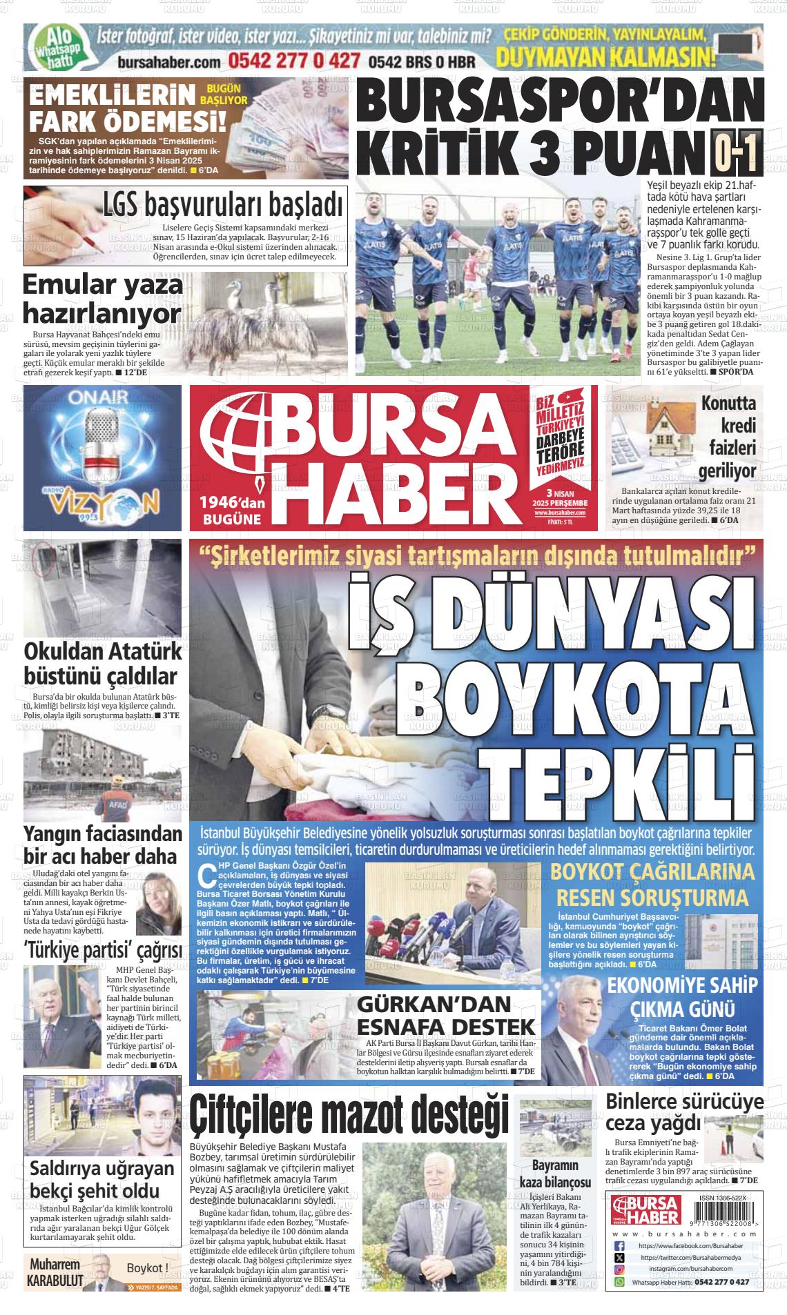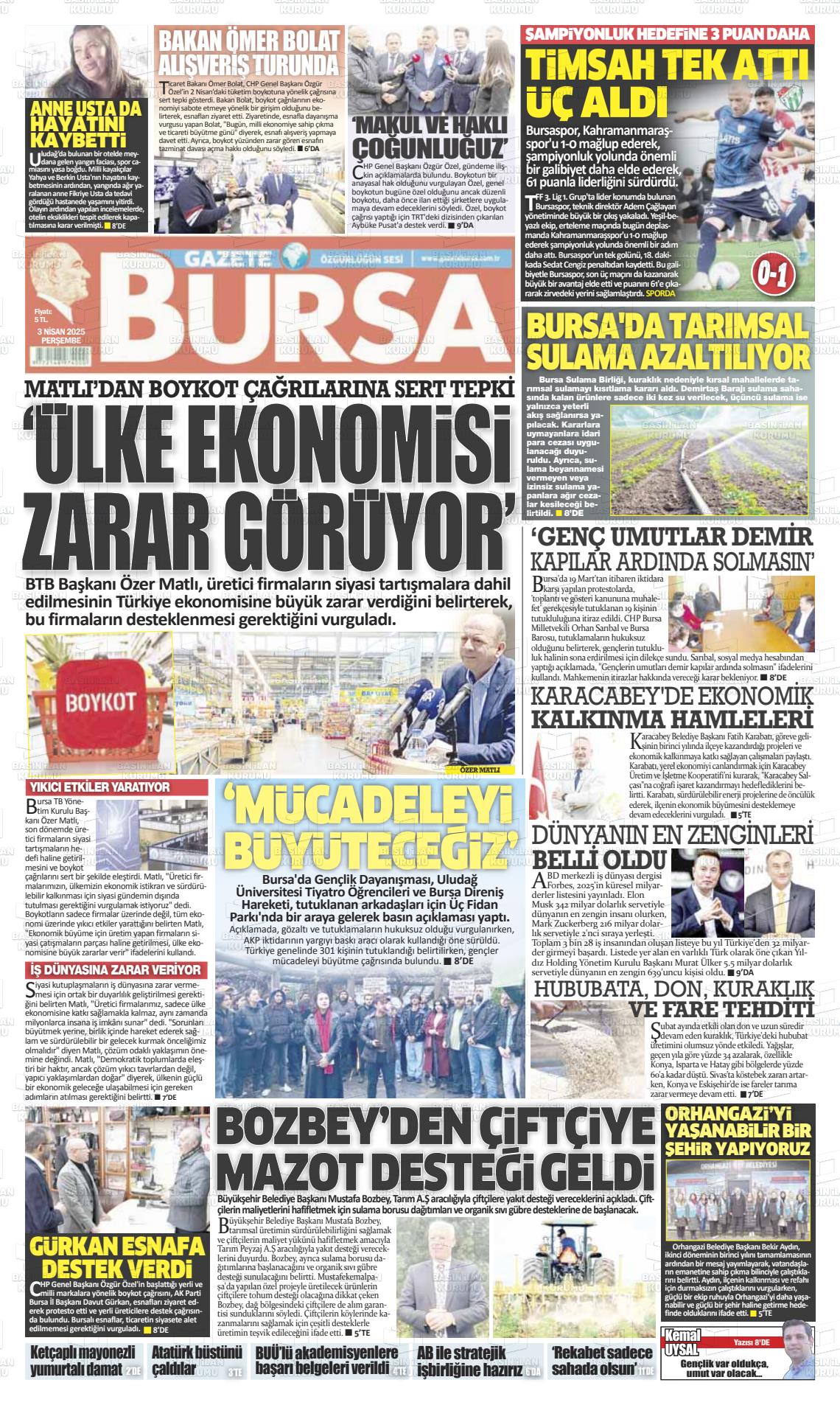 Bursa Yerel Gazeteleri 17 Ocak 2025, Cuma Günü Manşeti