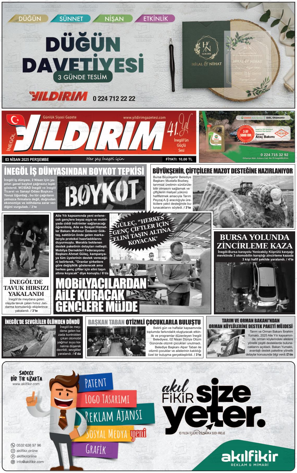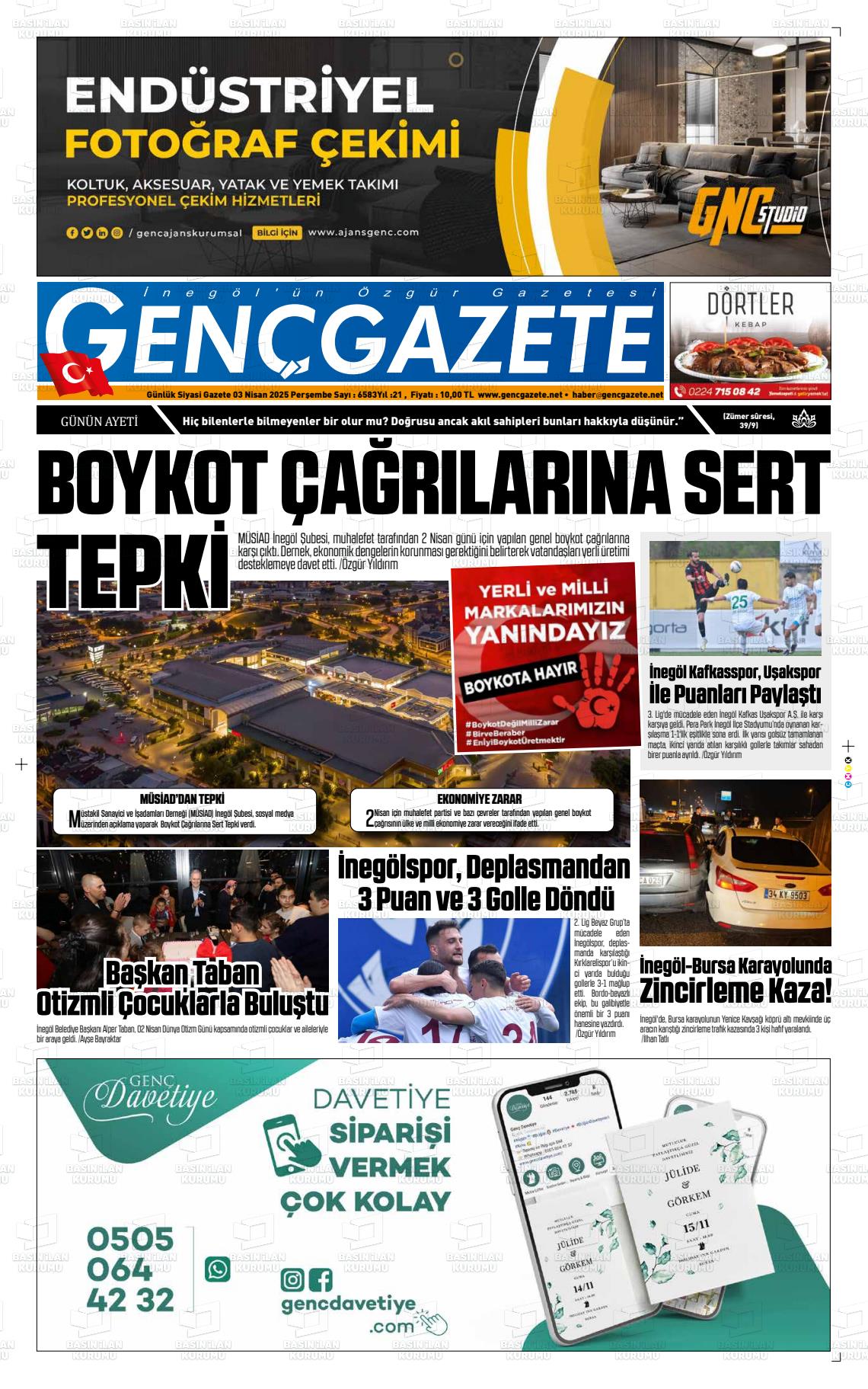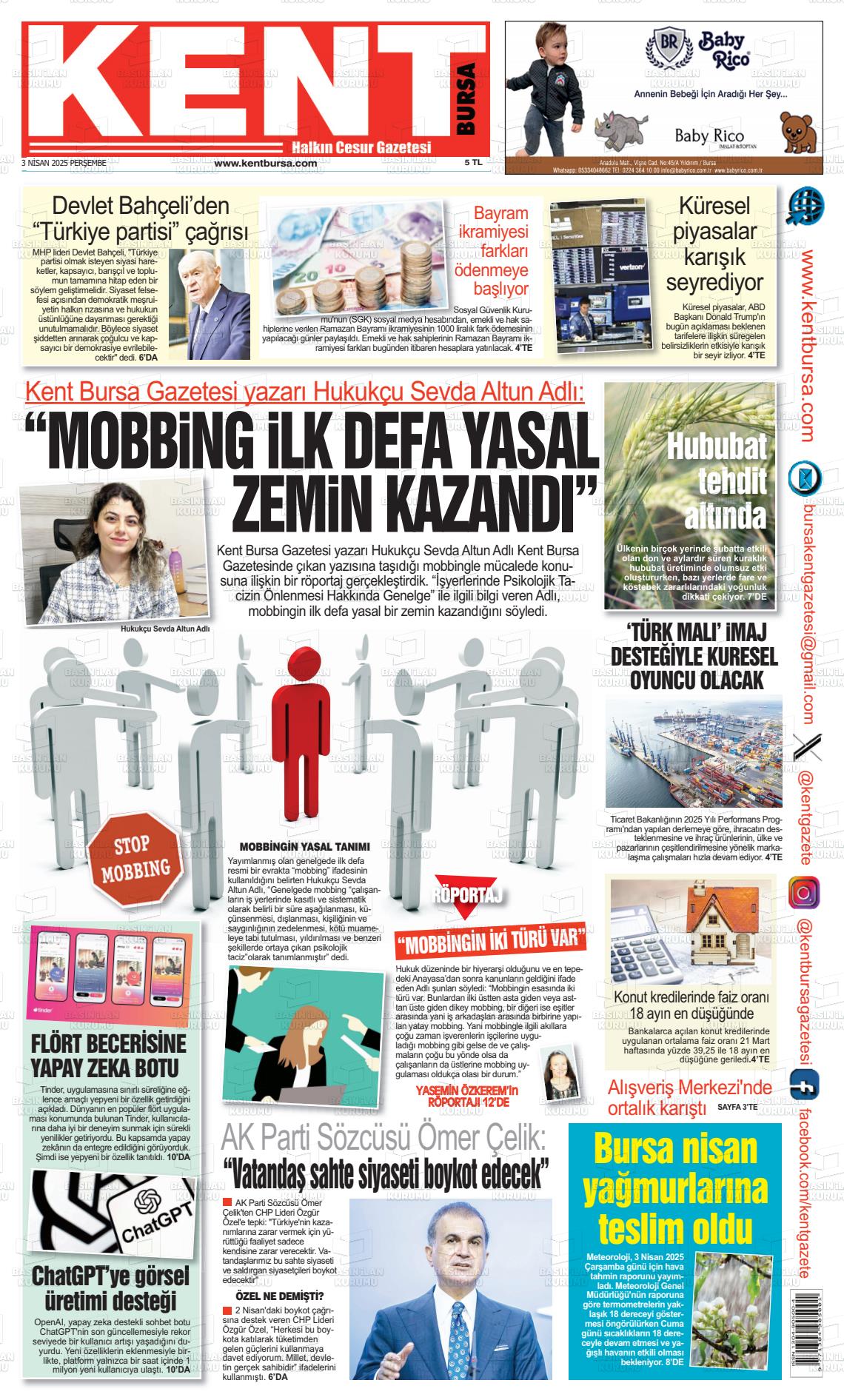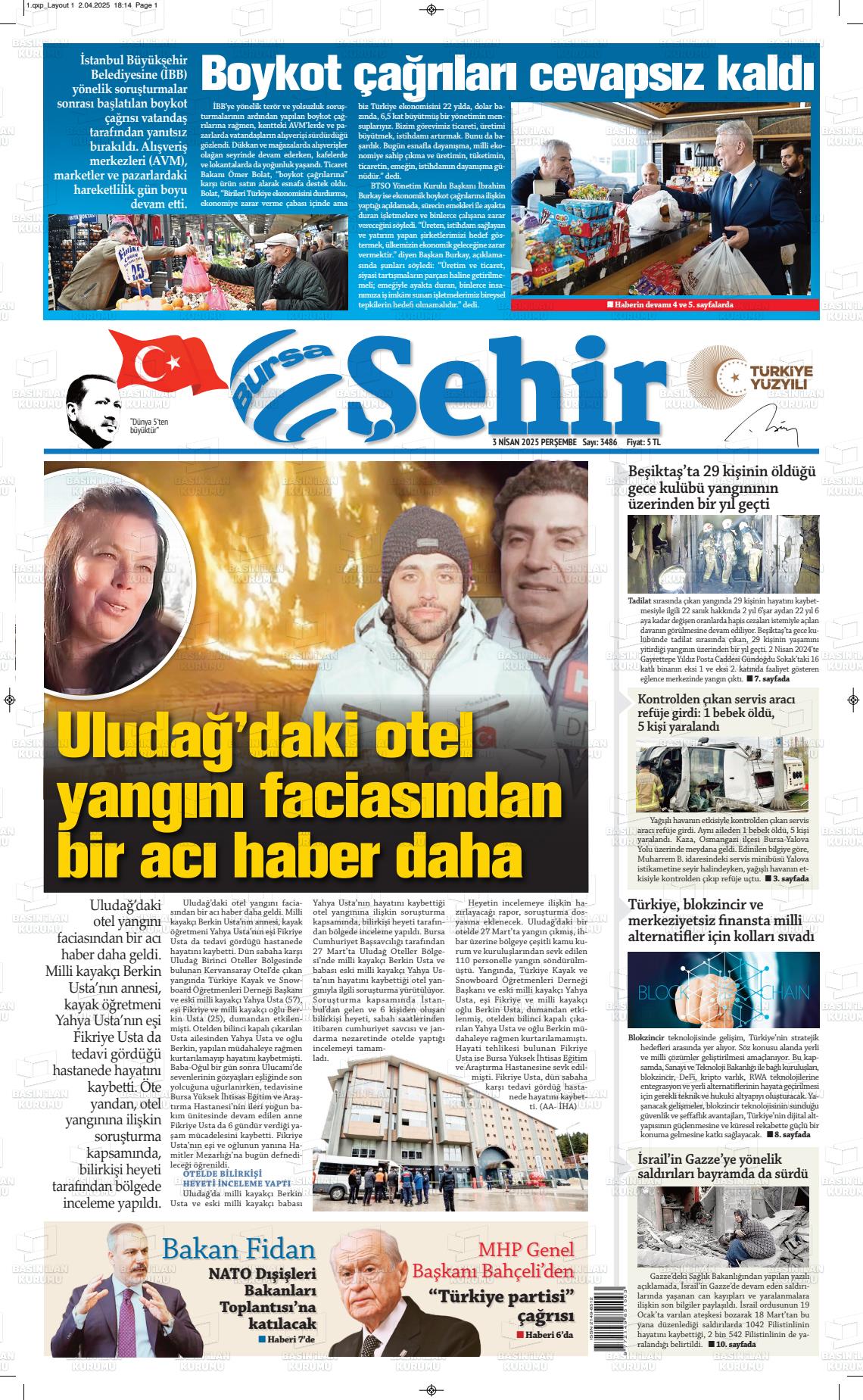 Bursa Yerel Gazeteleri 17 Ocak 2025, Cuma Günü Manşeti